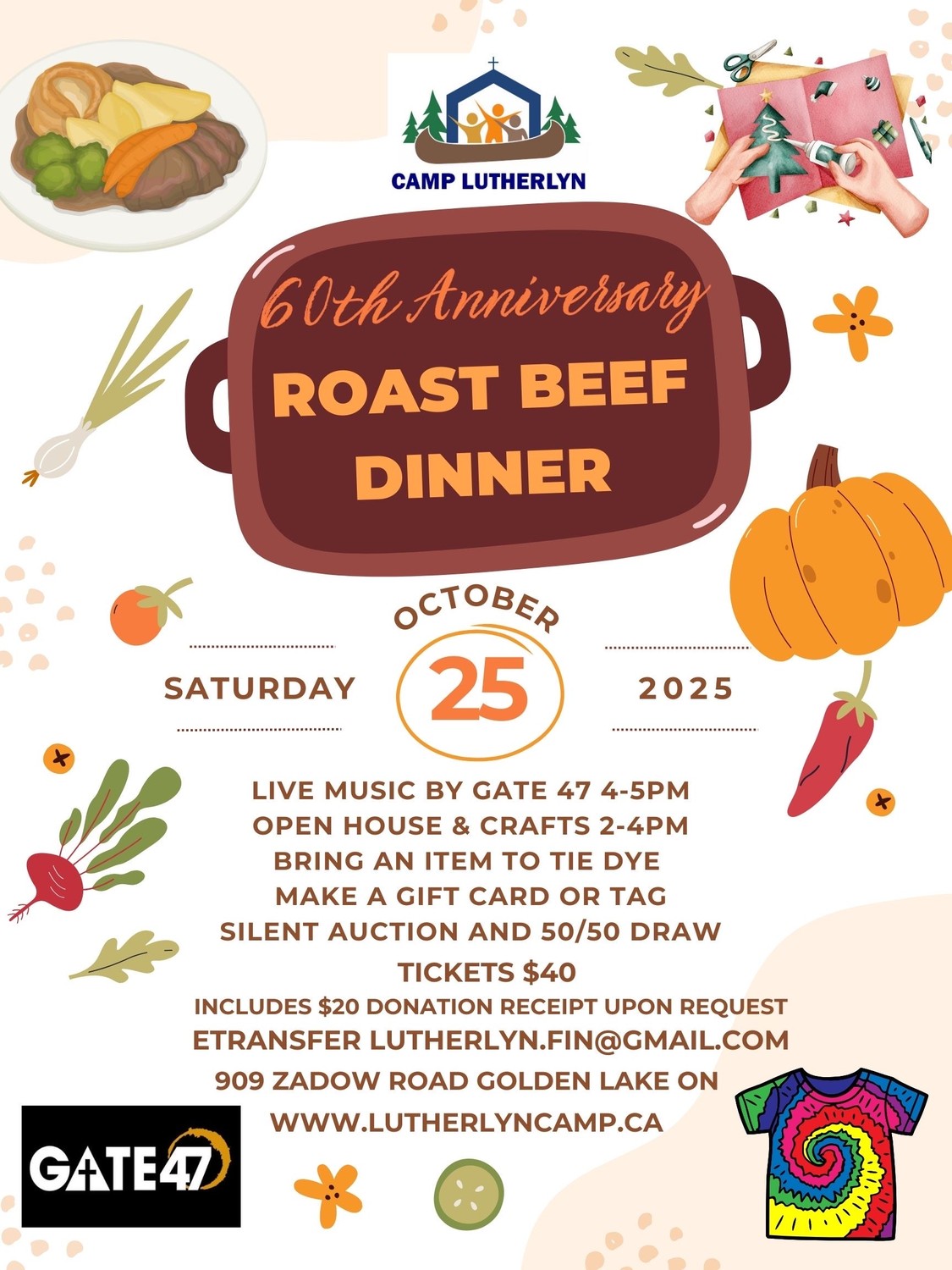 Saturday October 25: 60th Anniversary Roast Beef Dinner