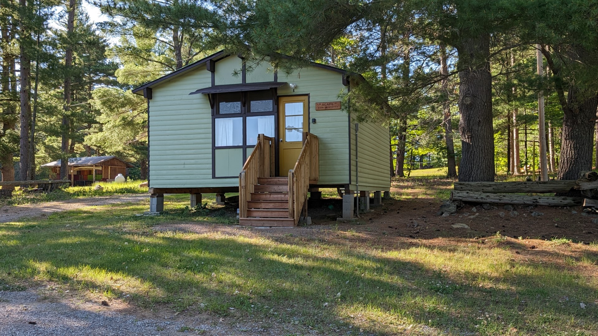 Agape is located in the heart of the main camp area - close to the campfire pit, volleyball, horseshoes, the new low ropes obstacle course, tetherball and the Gaga ball pit. Of course, you have access to beautiful Bancroft Beach with canoes and life jackets.